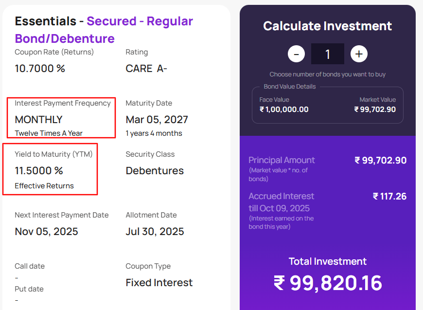 | Corporate Bonds | 8 lakh | Gives 10–10.5% yearly returns; often pays monthly interest |